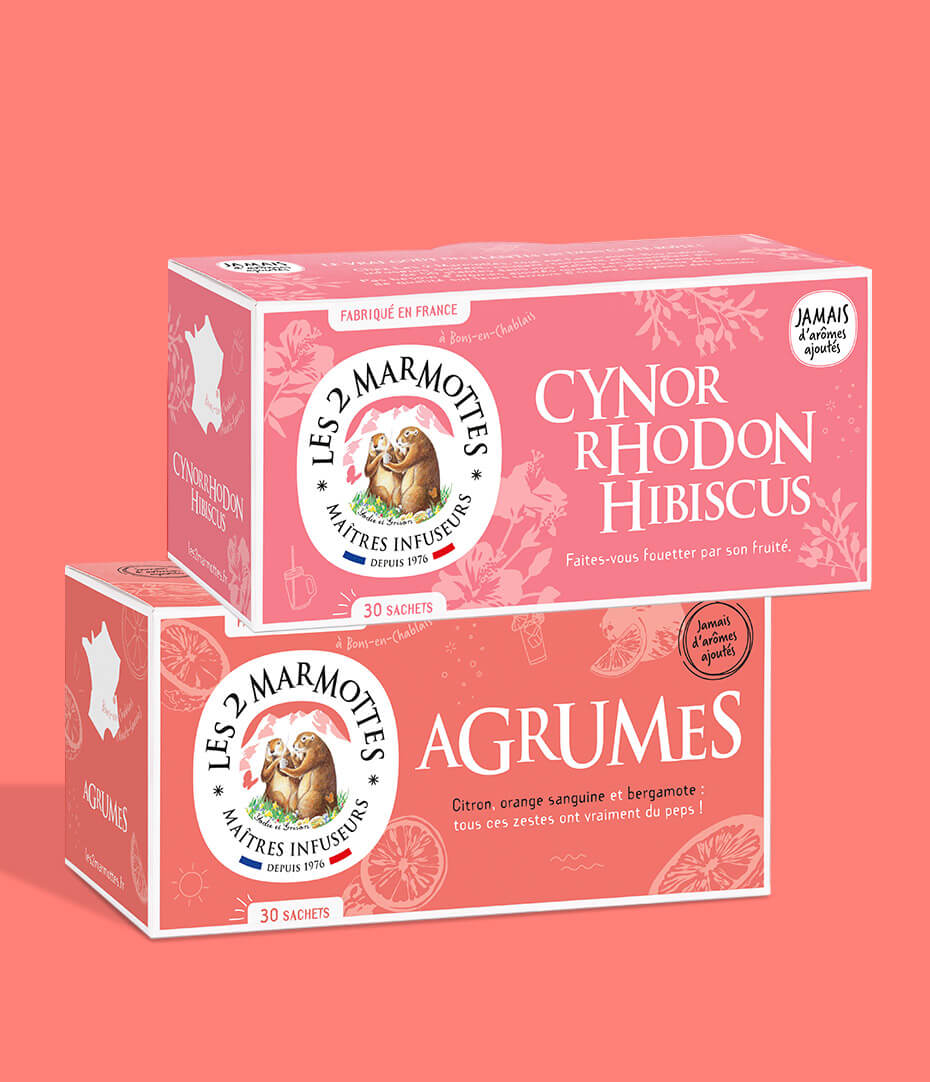 Vous pouvez aussi prolonger l’été avec notre infusion Agrumes. Du zeste, des fruits et…des fleurs (d’hibiscus !) pour une boisson saine et sans colorant, parole de marmottes.