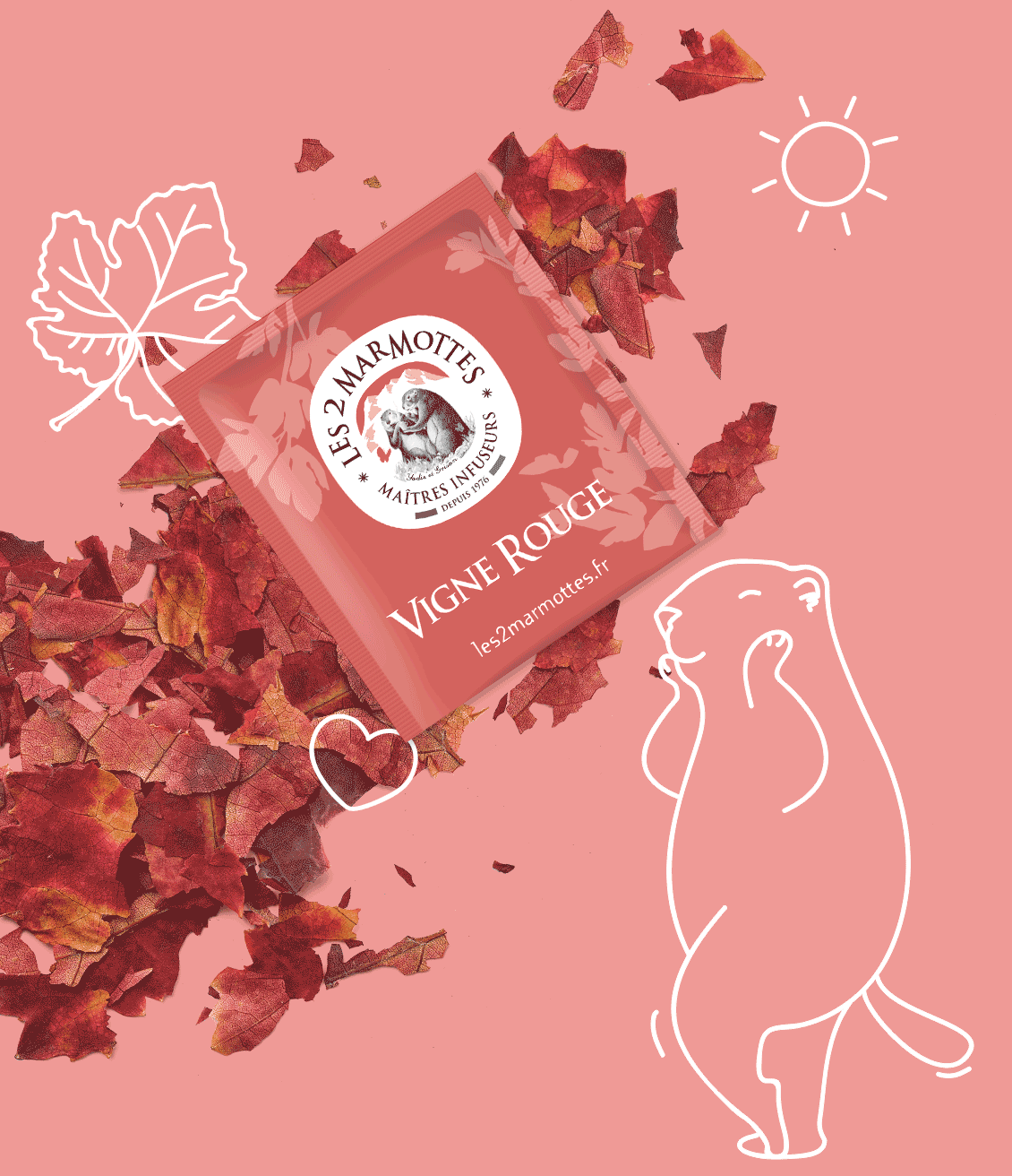 Dans notre tisane Rooibos Cassis c’est à la saveur boisée des feuilles de cassis que nos petites marmottes sont venues associer la feuille de vigne rouge. Une recette 100% plantes et sans jamais d’arômes ajoutés.