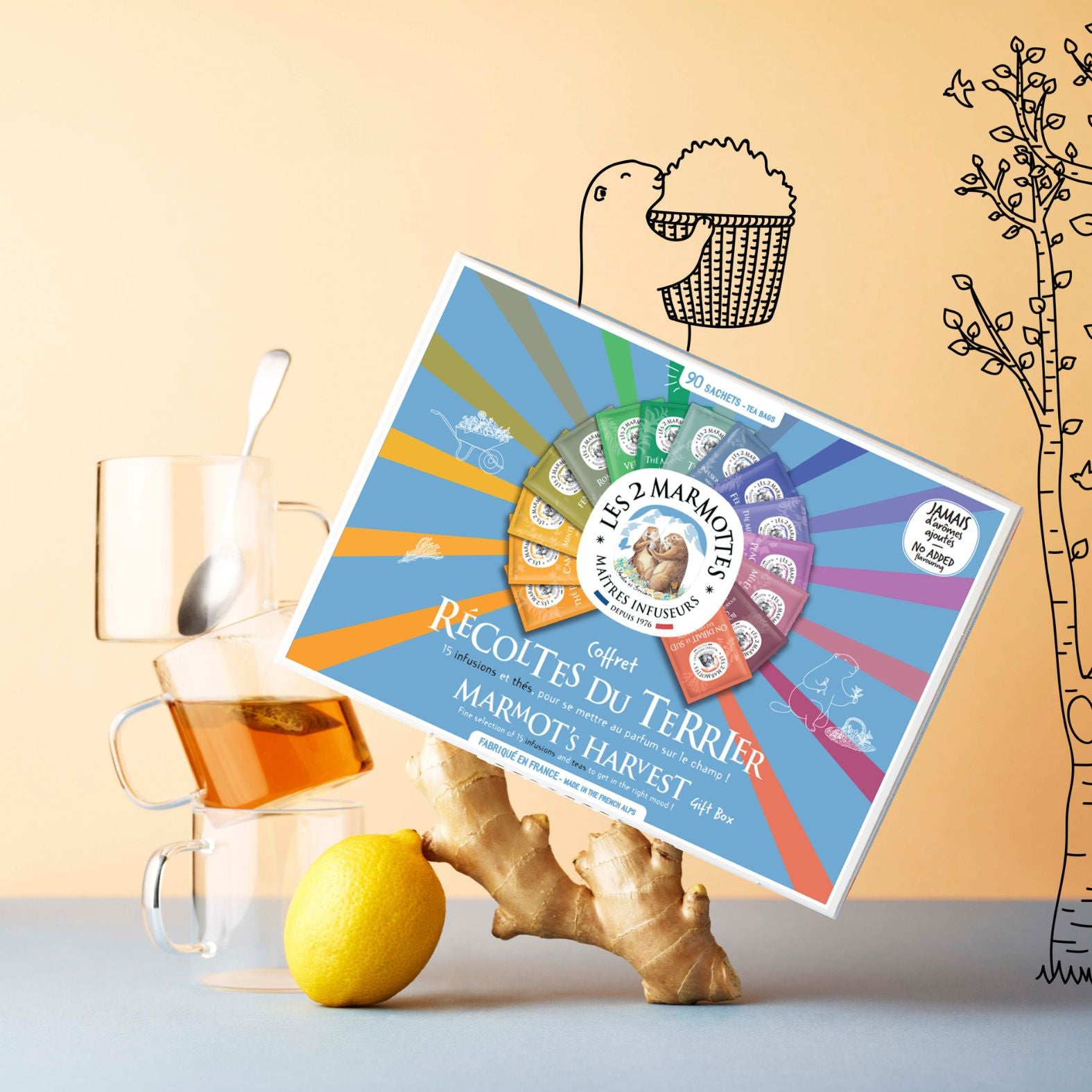 Les marmottes préparent Noël : découvrez la gamme de coffrets cadeaux, les tisanes de Noël et les thés de Noël, à offrir pour le Secret Santa ou le 25 décembre.