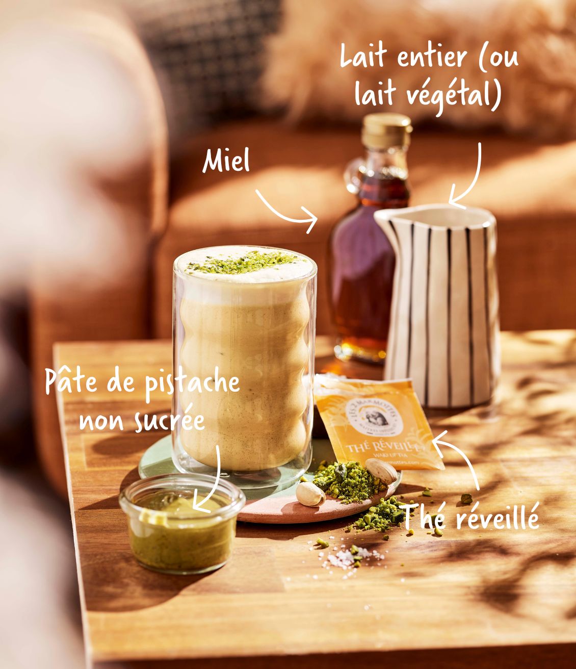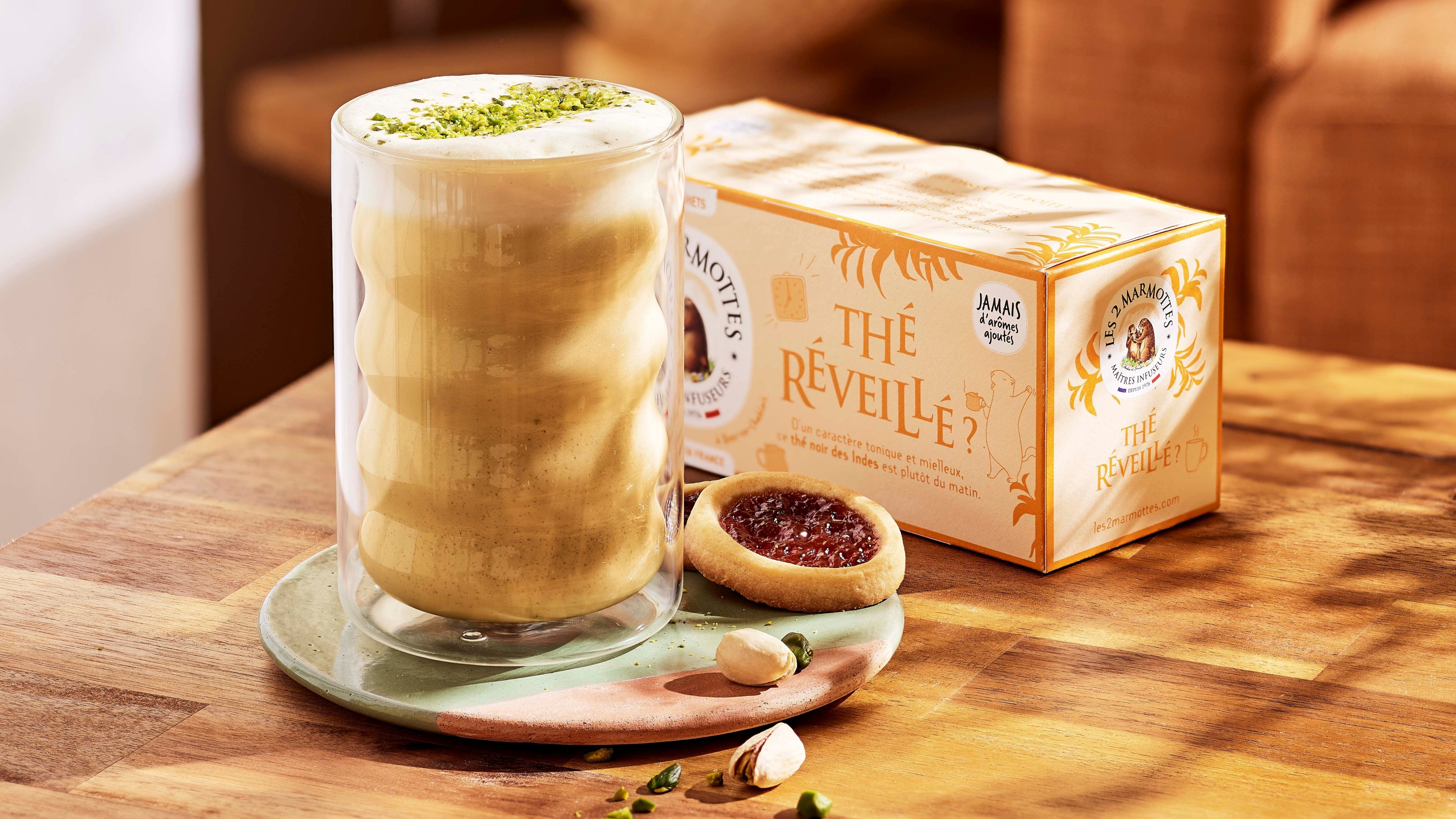 Come on, now that you know everything about pistachios, will you roll up your legs for the recipe? No question of leaving the Pistachio Latte exclusively to coffee aficionados, the Marmots' Pistachio Latte is made with black tea.