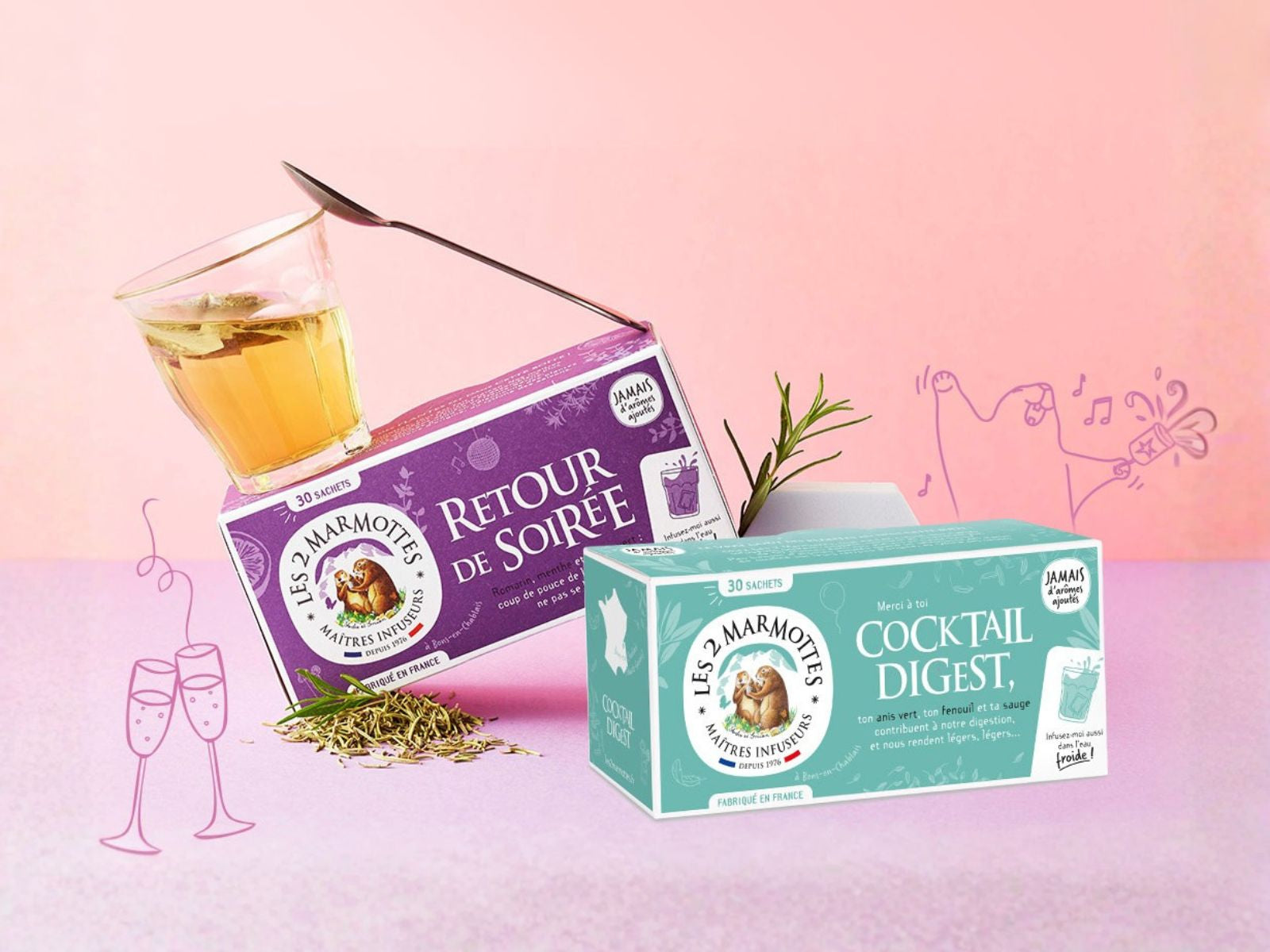 Need to get up on the right side of the bed after a long after-work session? Our Retour de Soirée infusion is made for you: lime, sweet mint, and rosemary to keep you from waking up feeling out of sorts! Feeling a bit chilly? Winter Frizzy Infusion with cinnamon bark, thyme, and cloves. Rest guaranteed. But, above all, don't miss our Signature Infusion, our very first, the Marmot Infusion! OK, it wasn't yesterday, but the magic still works: it's impossible not to rest easy! Marmots' word!