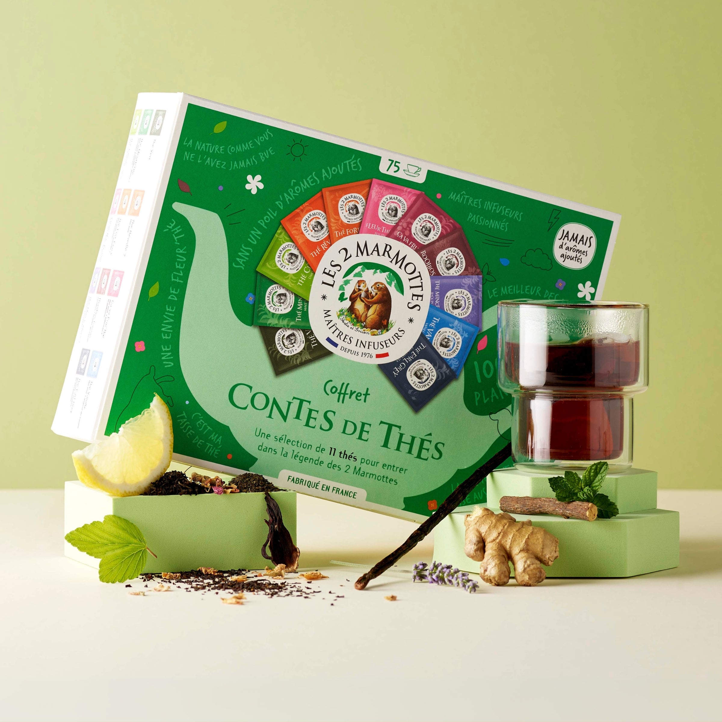 Chez Les 2 Marmottes, on adore cet esprit terrier qui consiste à se retrouver autour d’une bonne tasse de thé pour refaire le monde ! Dans ce coffret 100% plantes et 100% recettes bio, retrouvez toute notre gamme de thés. Fruités ou épicés, Thé noir, thé vert, thé parfumé : il y en a pour tous les goûts.