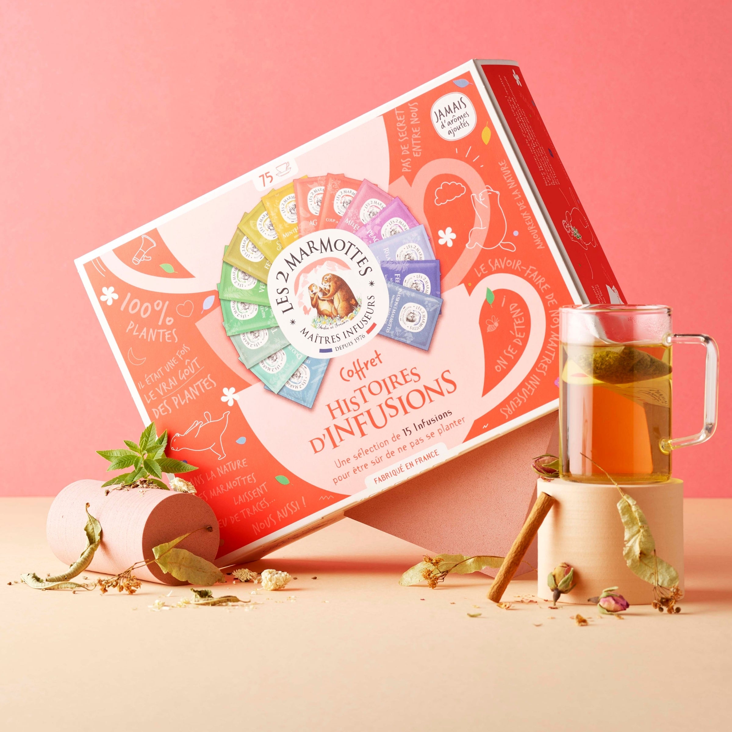 Amateurs de plantes, inconditionnels des infusions, fins gourmets ou curieux à l'affût de nouvelles découvertes gustatives, vous serez comblés par notre Coffret Histoires d’Infusions Les 2 Marmottes.