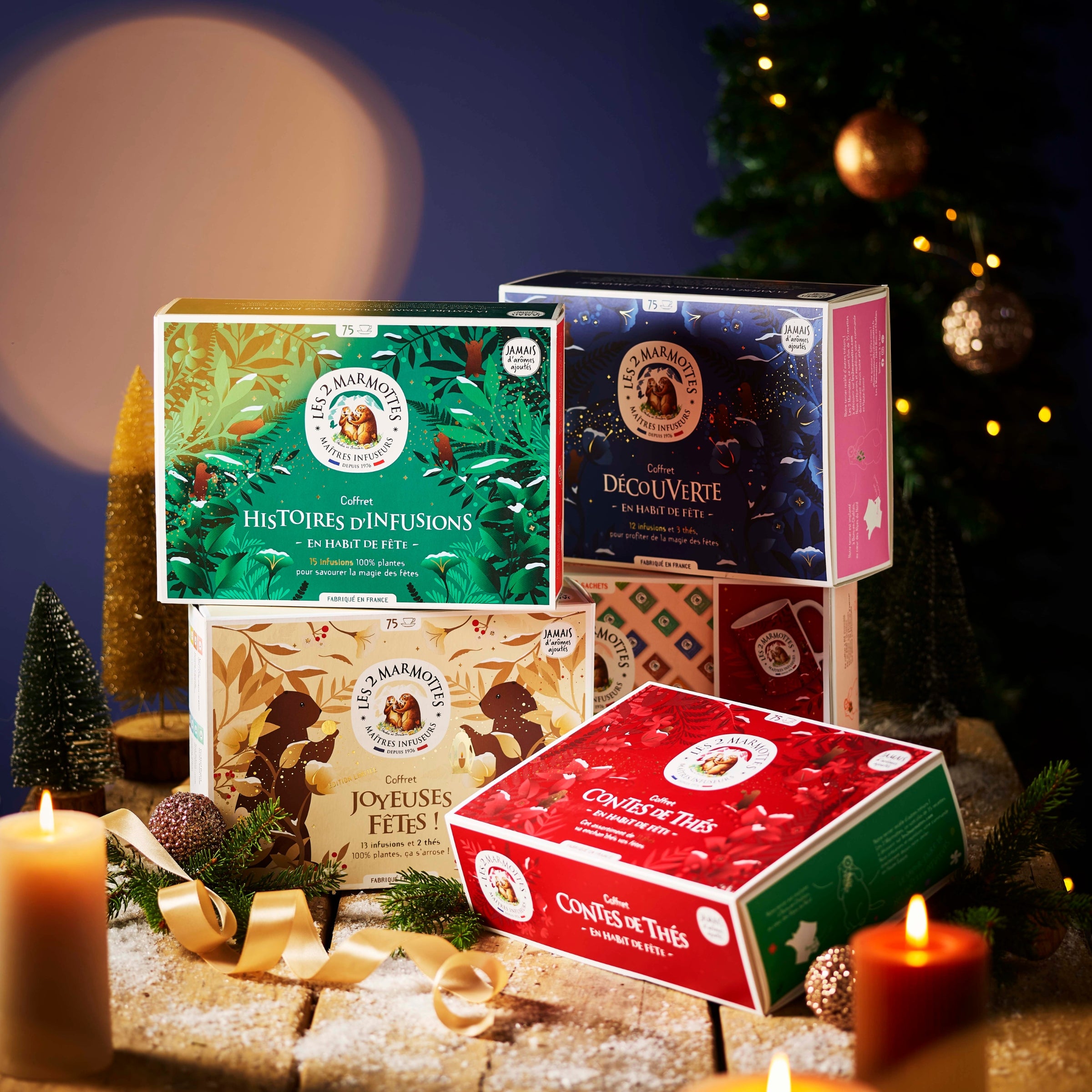 Les marmottes préparent Noël : découvrez la gamme de coffrets cadeaux, les tisanes de Noël et les thés de Noël, à offrir pour le Secret Santa ou le 25 décembre.