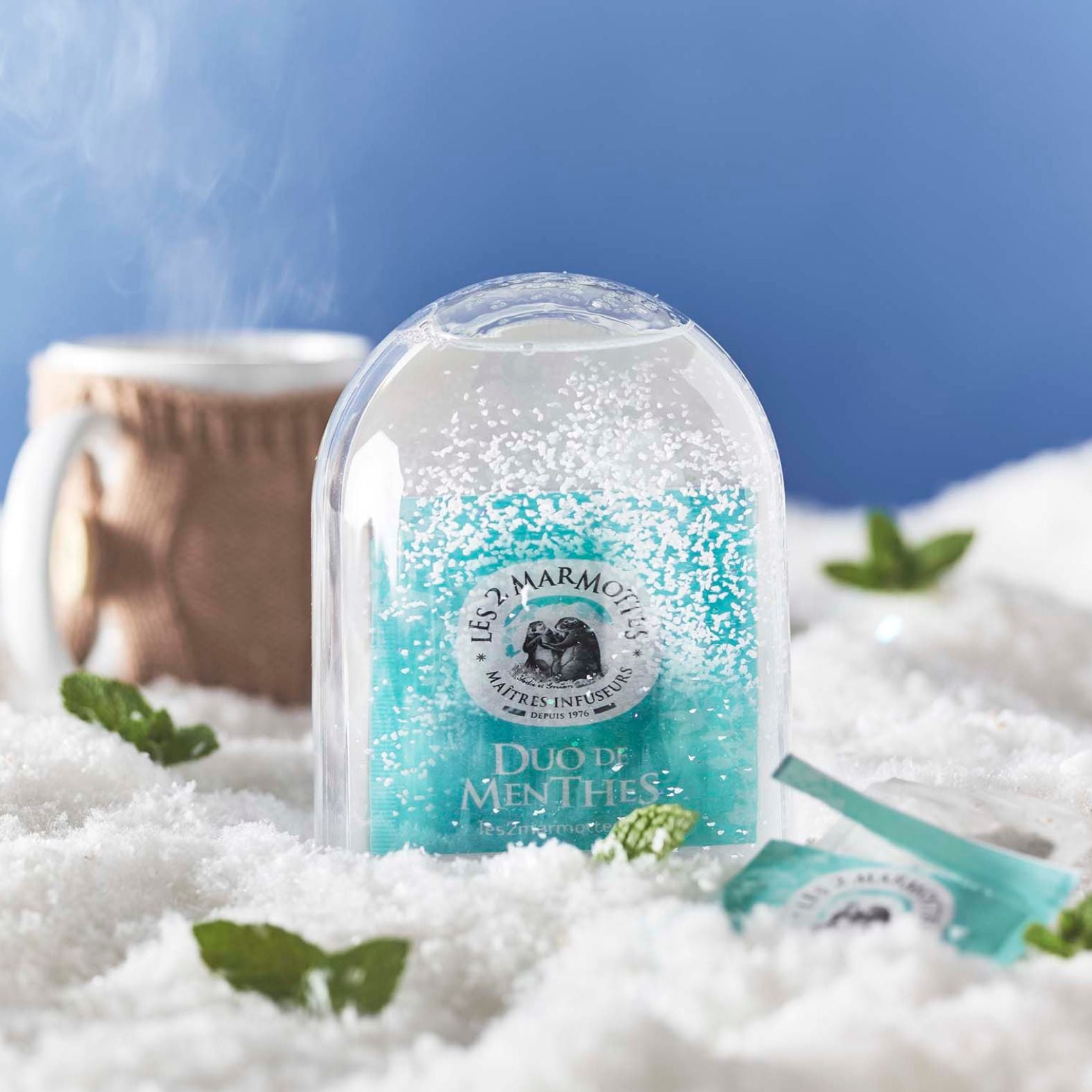 Une seule menthe dans une tisane bio ? C'était trop peu pour nos maîtres infuseurs en quête de fraîcheur absolue ! Qu'à cela ne tienne, ni une ni deux ils ont décidé de combiner tisane menthe douce et infusion menthe poivrée !