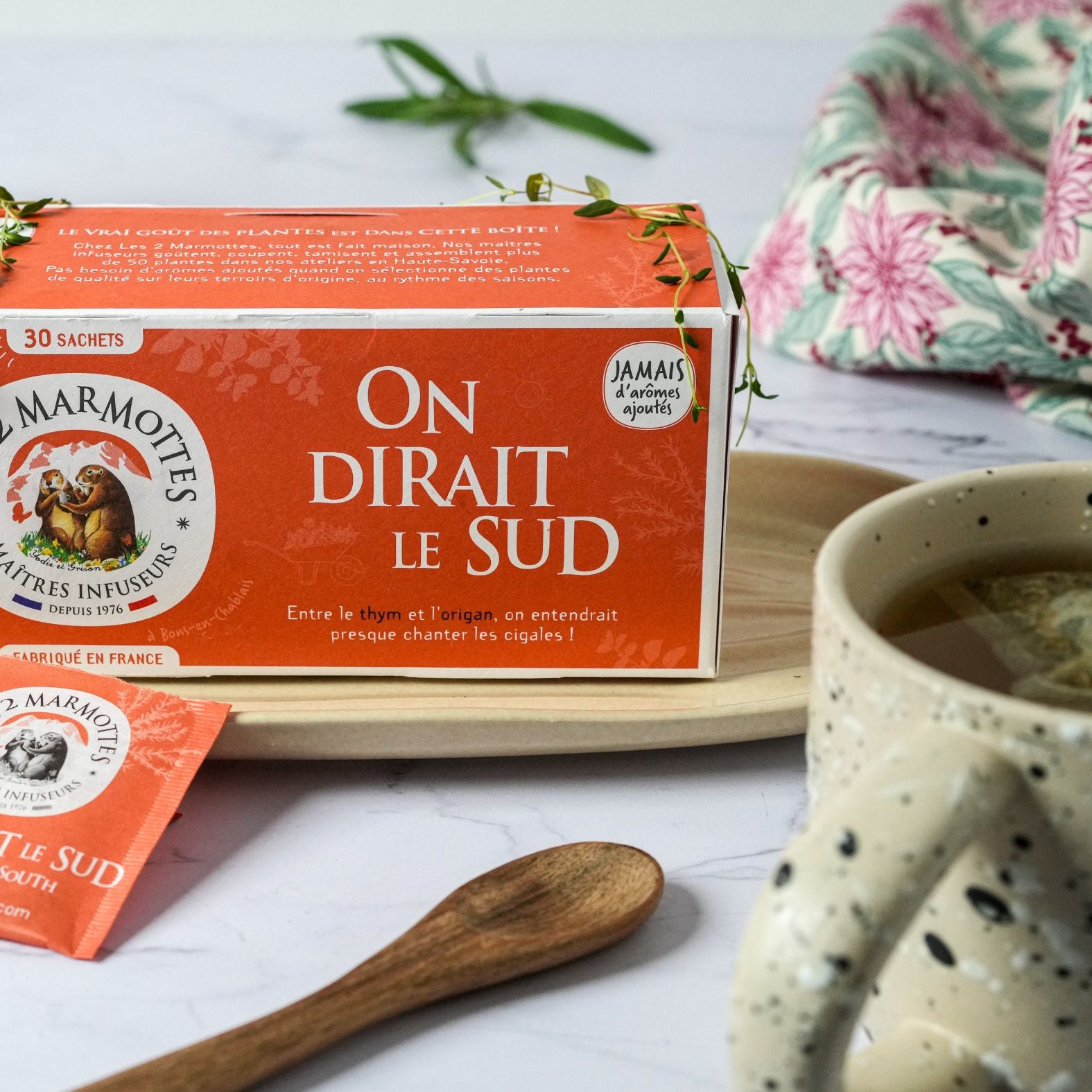 Pour une infusion qui respire le soleil et qui enchante les papilles, nos maîtres infuseurs se sont inspirés des parfums de la garrigue. Ils ont sélectionné le meilleur des plantes, comme toujours. Pourquoi se priver quand elles sont si naturellement parfumées ? Allez, fermez les yeux et laissez-vous porter par toutes les fragrances aromatiques que renferme cette recette aux jolis accents méditerranéens.